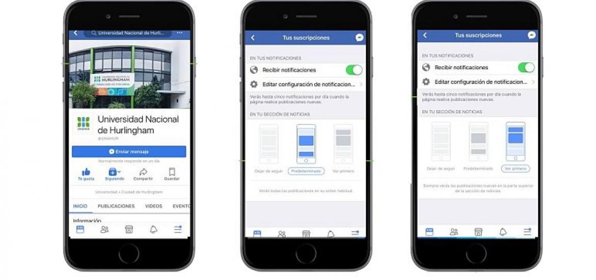 Hace algunas semanas Facebook cambió su algoritmo, generando así una modificación en el tipo de contenidos que sus más de 2 mil millones de usuarios ven a diario. Con el cambio, la red social comenzó a privilegiar los posteos de amigos por sobre los de "fan pages". De esta forma, puede que las novedades de nuestra Universidad no les figuren con tanta frecuencia como hasta hace poco. Es por esto que para que puedan seguir de cerca las novedades de la UNAHUR en facebook los invitamos a realizar una breve gestión de dos pasos. Lo pueden hacer desde su pc de escritorio o su teléfono celular: