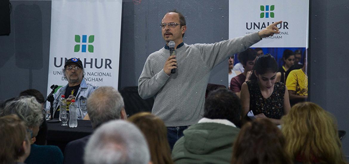 Ayer por la tarde, más de doscientas cincuenta personas se acercaron al Gimpón de la Universidad para presenciar "Peronofobia: A ver si se entiende al peronismo", la "showferencia" de Pedro Saborido y Alejandro Grimson. El evento contó con la participación del Rector Lic. Jaime Perczyk quien, al inicio, señaló que "la Universidad pública es un espacio donde entran todas las voces que tienen que entrar. Lo único que no entra es lo patológico. Nosotros no vamos a permitir que en la Universidad se hable bien de Videla, de Viola o digan que las Malvinas son inglesas" y agregó que todos los que han pedido un espacio en las instalaciones universitarias, lo han tenido porque la universidad "es un espacio público y así lo vamos a defender".